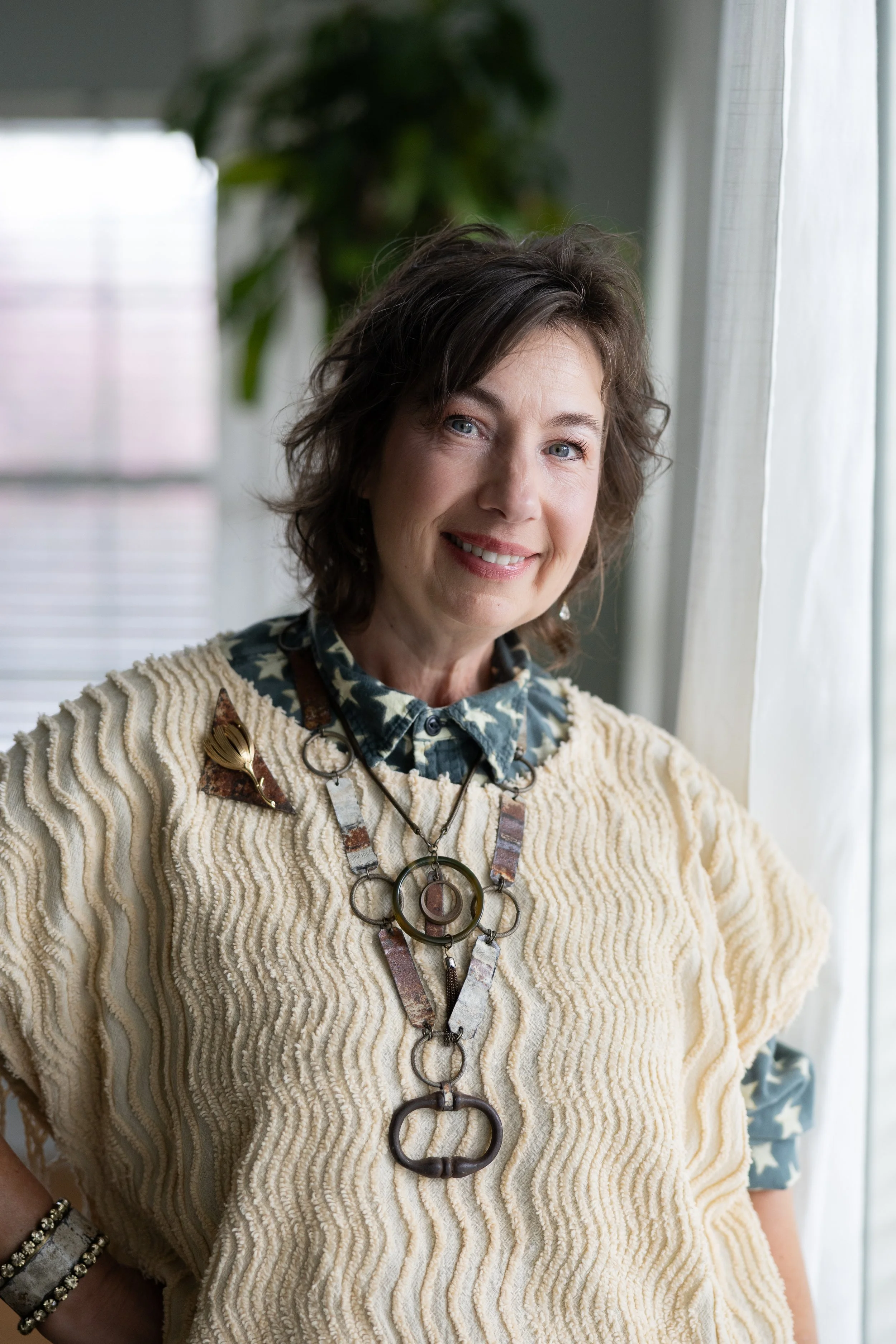 Lori Priest is an upcycling artist based in Niceville, Florida, specializing in secondhand clothing and accessories. Her jewelry line, Reinvented Jewel, is crafted from recycled tin, transforming discarded materials into wearable art. Driven by a passion for sustainability and fashion, Lori creates one-of-a-kind pieces that challenge conventional ideas of value and beauty. Her work has been featured in two local galleries and continues to inspire new perspectives on conscious creativity.